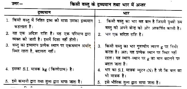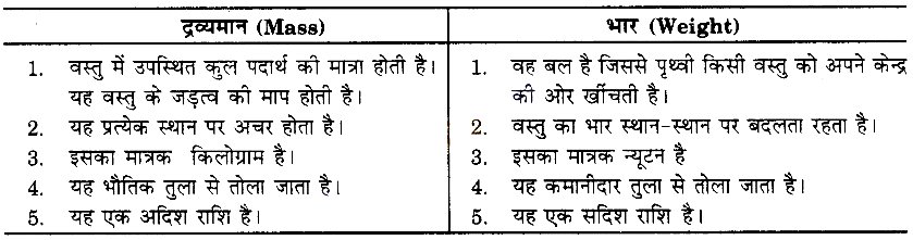किसी वस्तु के द्रव्यमान तथा भार में क्या अन्तर है?