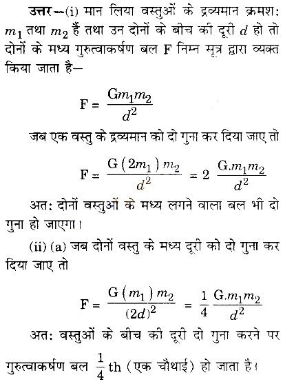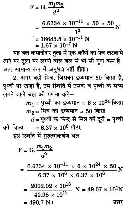 5. यदि पृथ्वी का द्रव्यमान बिनो परिवर्तित हुए, उसका व्यास आधा हो जाये तो पृथ्वी पर किसी वस्तु का भार
