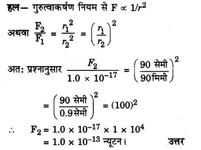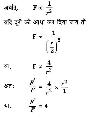 अतः वस्तु के बीच दूरी आधी करने पर उनके बीच लगने वाला गुरुत्वाकर्षण बल चार गुना हो जाता है।