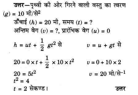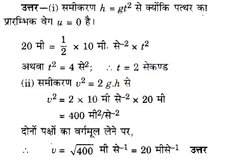 11. किसी पत्थर को एक भवन की छत से छोड़ा गया, यह 2 सेकण्ड में पृथ्वी पर पहुँच गया, भवन की ऊँचाई होगी