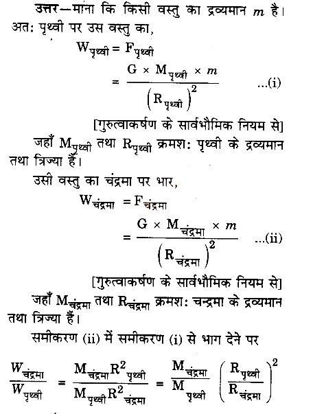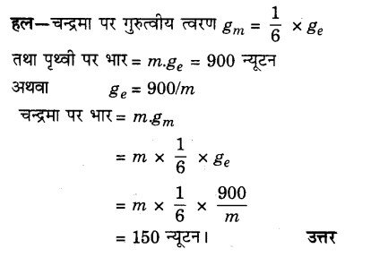 10. किसी पिंड का भार पृथ्वी पर 36 किग्रा भार है, चन्द्रमा पर उसका भार होगा